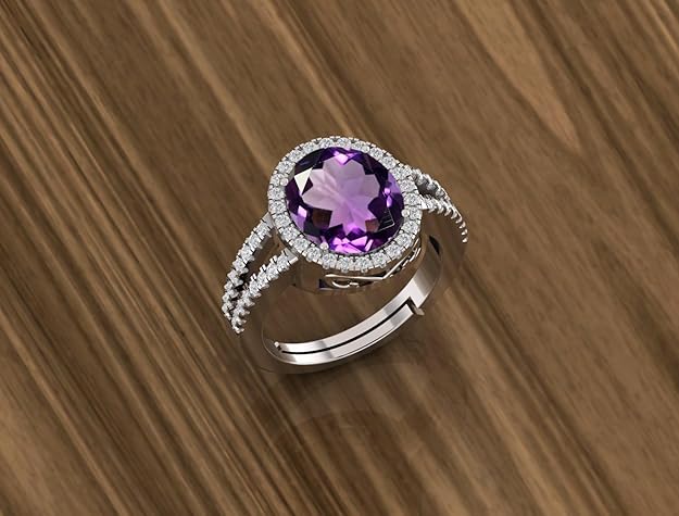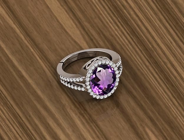 9.25 Ratti 8.50 Carat Natural Amethyst Gemstone Silver Plated Ring Oval Cut Gift for Womens And Girls