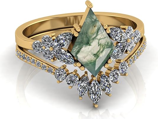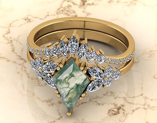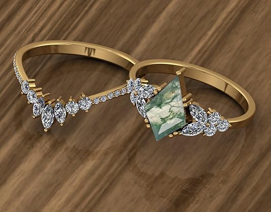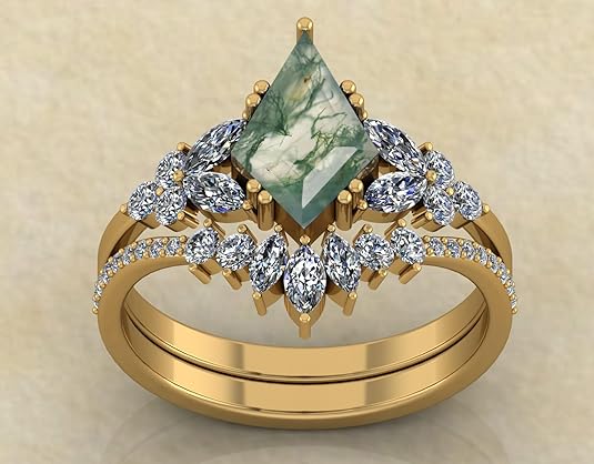 Be the first to review “Beautiful Oval Shape Dainty Natural Moss Agate Gemstone Wedding Ring Set, 22K,18K,14K Gold Unique Agate Engagement Ring Set”